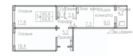 Продаётся 3-комнатная квартира в сданном доме (Фламинго, 20 (поз. 5)), срок сдачи: II-кв. 2019, общей площадью 69.6 кв.м., на 1 этаже. Расположение, транспортная доступность