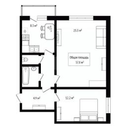 Общая площадь — 57,8 м².