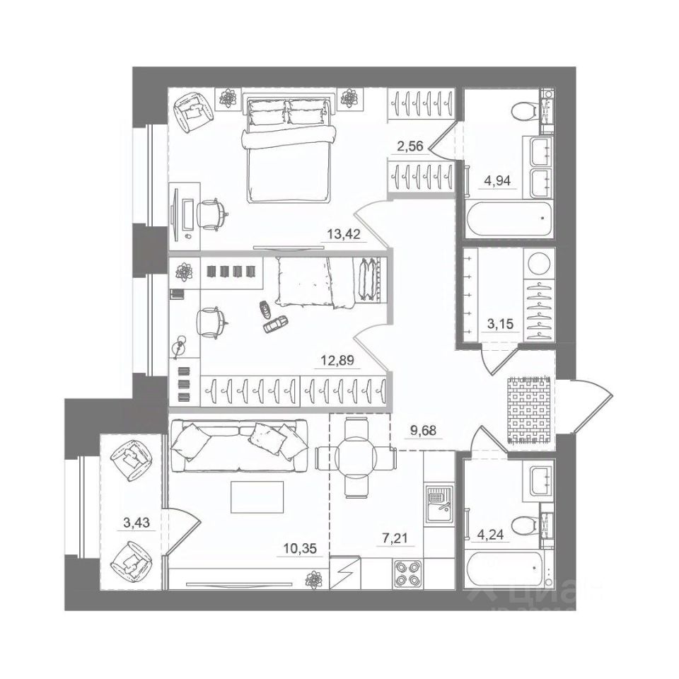 Жилая площадь46,1 м²