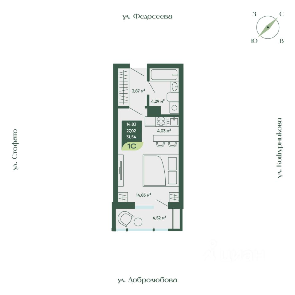 Общая площадь31,54 м²
