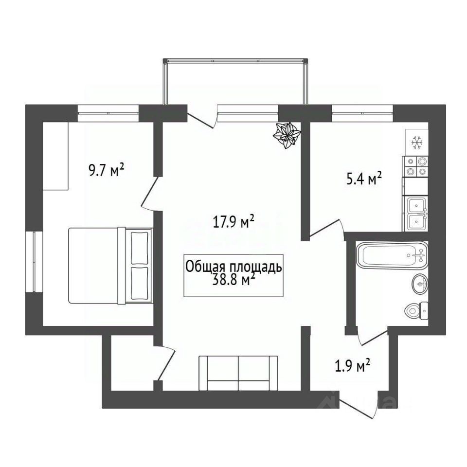 • Жилая площадь составляет 27,6 квадратных метров