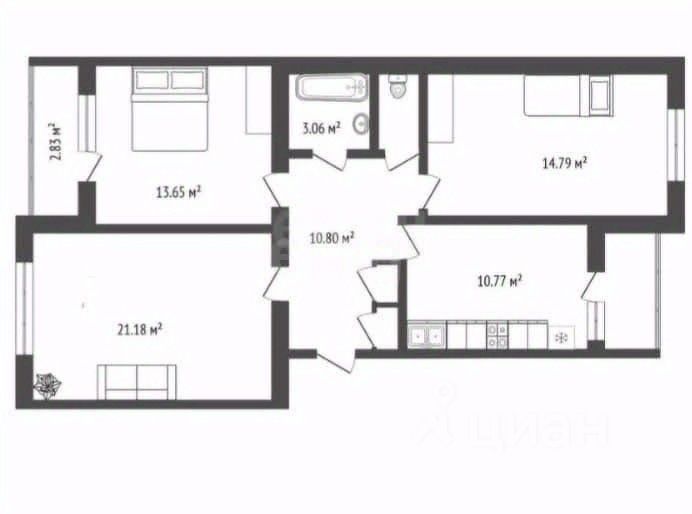 Общая площадь — 80 кв. м, жилая — 56 кв. м. Удобная и продуманная планировка включает кухню 10,1 кв. м, все комнаты изолированы, что позволяет грамотно зонировать пространство. Две лоджии добавляют дополнительный комфорт и функциональность.