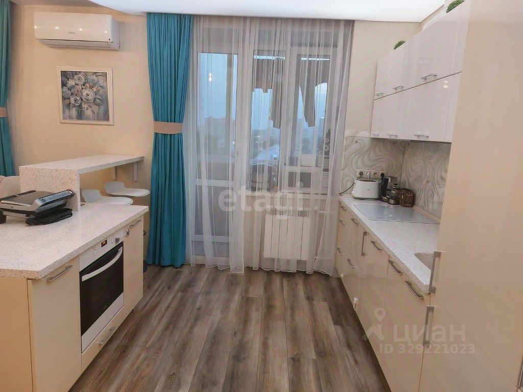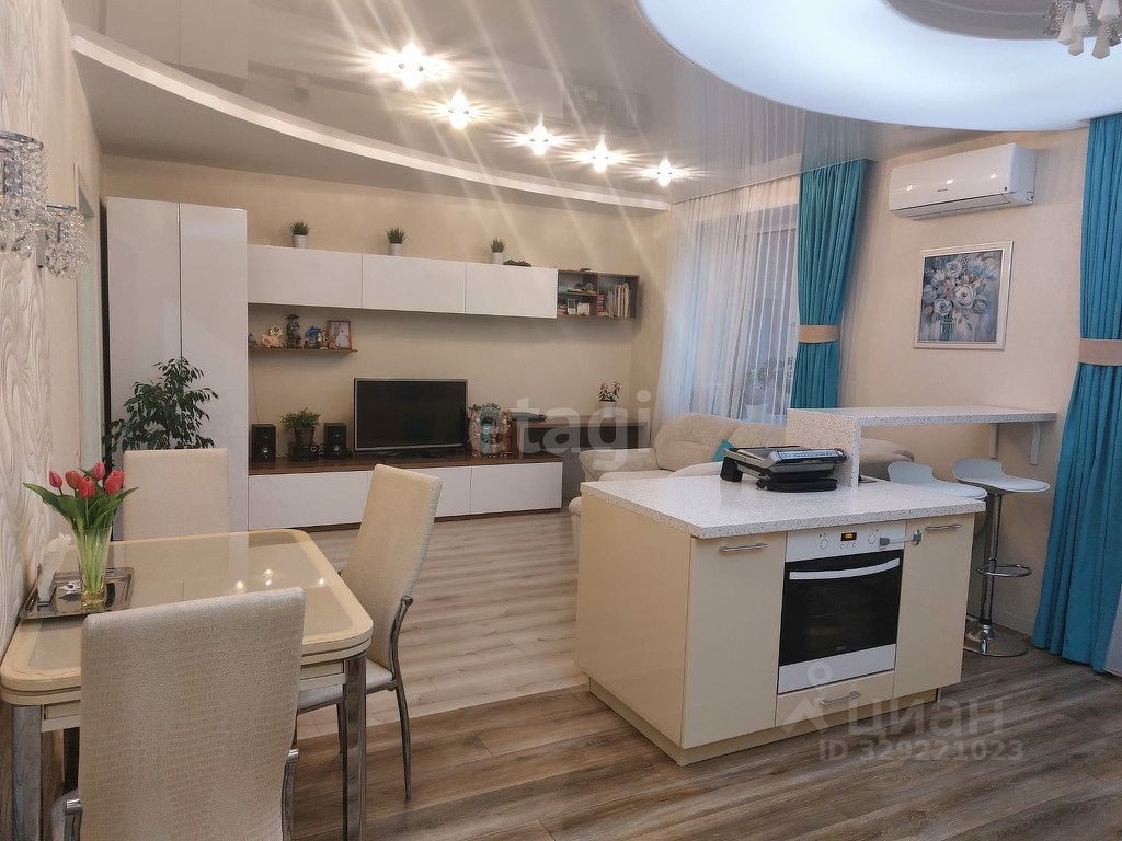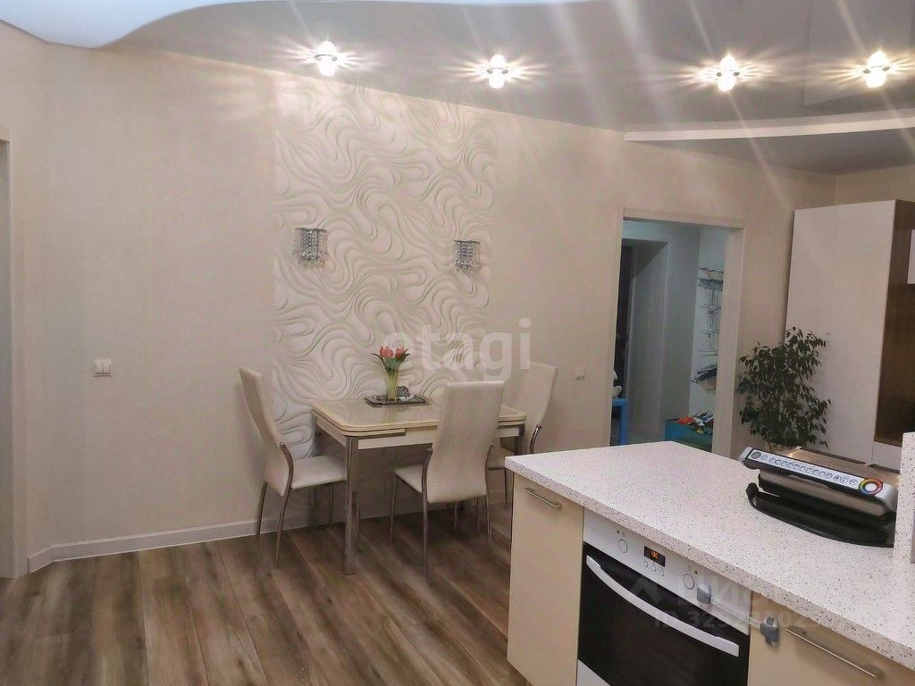 Квартира оформлена как евротрёшка: кухня объединена с гостиной в единое пространство около 30 м². Перепланировка узаконена, документы готовы. При желании стену можно вернуть без больших затрат. Есть три лоджии, включая выход с кухни.
