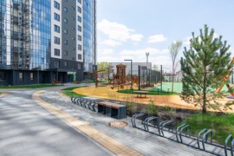 Дворы - просторная парковая зона площадью около тысячи квадратных метров. На территории внутреннего двора-парка нет автомобильных проездов, тщательно продуман ландшафтный дизайн с природными холмами, множеством зелёных насаждений и цветников. Большая многофункциональная детская площадка.