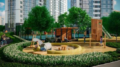 Территория комплекса занимает более 3 га. Построен и сдан новый муниципальный детский сад на территории комплекса. Подземный и наземный паркинг.