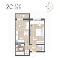 Продаётся 2-комнатная квартира в сданном доме (Забалуева, 69/2 (Дом 11)), срок сдачи: IV-кв. 2025, общей площадью 43.99 кв.м., на 8 этаже. Расположение, транспортная доступность