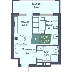 Общая площадь25,37 м²