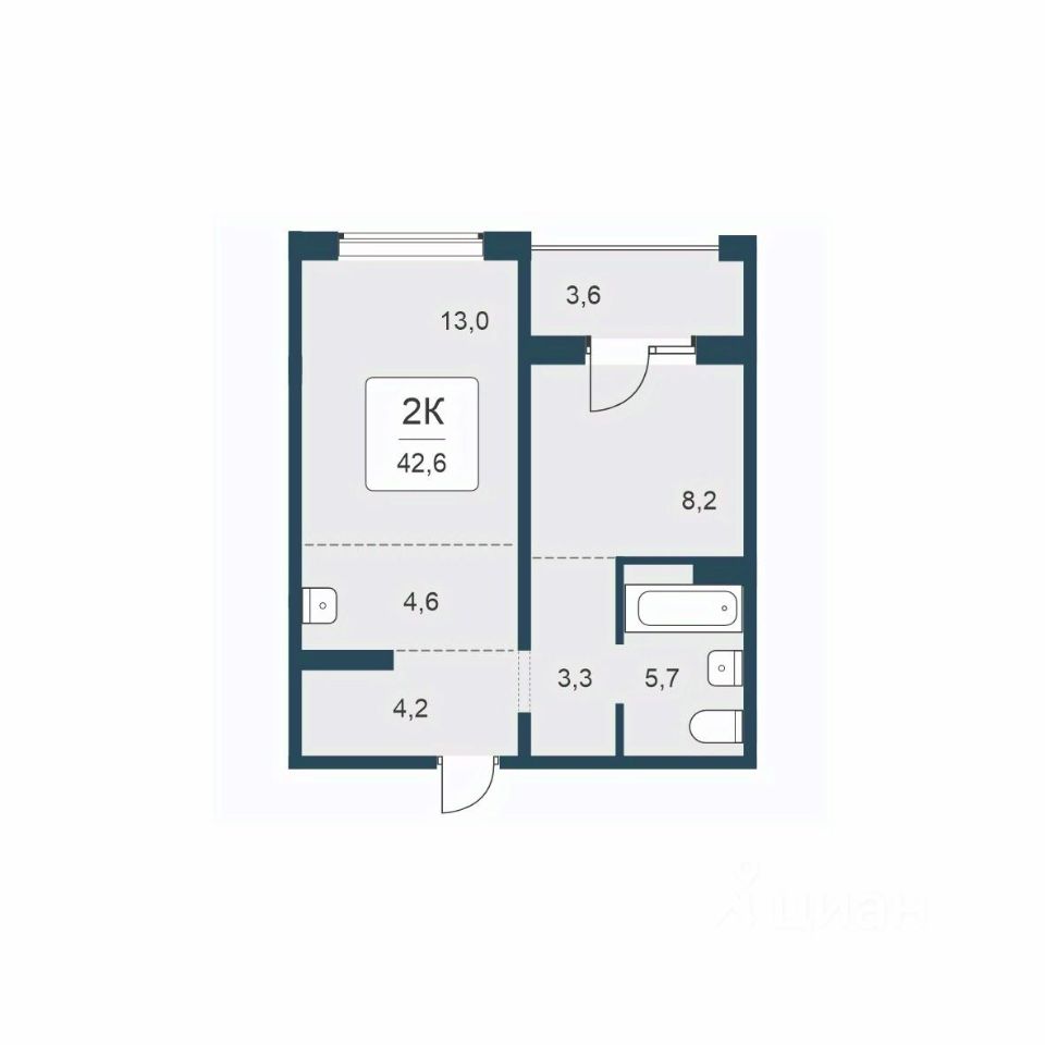 42,6 м²