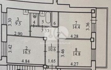 9,5 м²