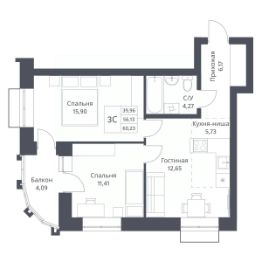 Продается 3-комн. студия с предчистовой отделкой. Квартира расположена на 14 этаже 18 этажного монолитно-кирпичного дома в миниполисе на Фадеева "Фора" от группы компаний "Поляков".