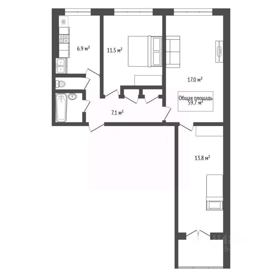 59,7 м²
