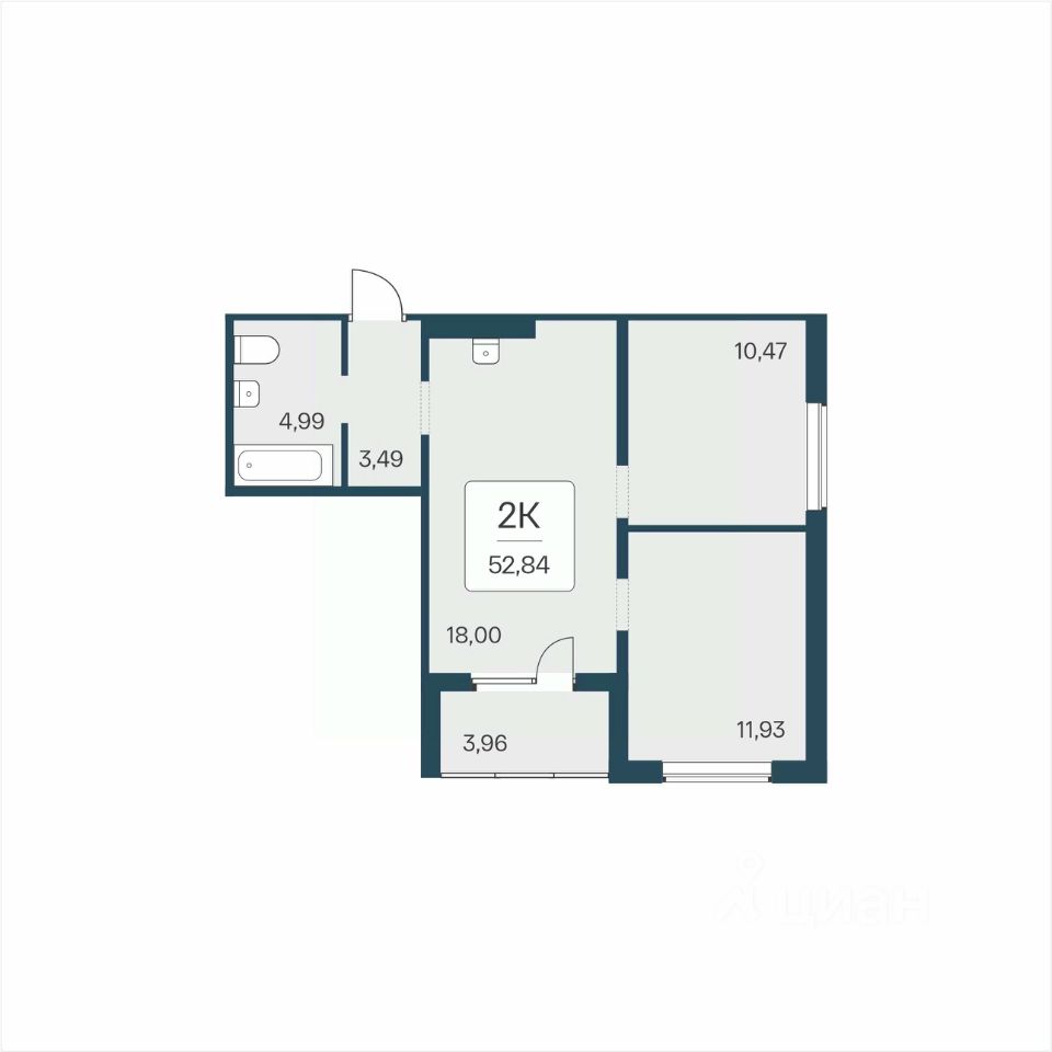 Общая площадь52,84 м²