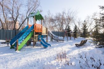 Дом находится под круглосуточной охраной, территория огорожена и оснащена стационарными камерами видеонаблюдения. Во дворе расположены две детские площадки, зона для выгула домашних животных и большая наземная парковка. Подъездные пути оборудованы двумя лифтами — пассажирским и грузовым, каждый из которых оснащен камерами наблюдения. Подъезды всегда содержатся в чистоте.