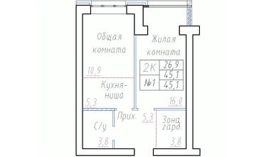 Продаётся 2-комнатная квартира в строящемся доме (Фламинго, 10 (Дом 28)), срок сдачи: II-кв. 2026, общей площадью 45.1 кв.м., на 3 этаже. Расположение, транспортная доступность