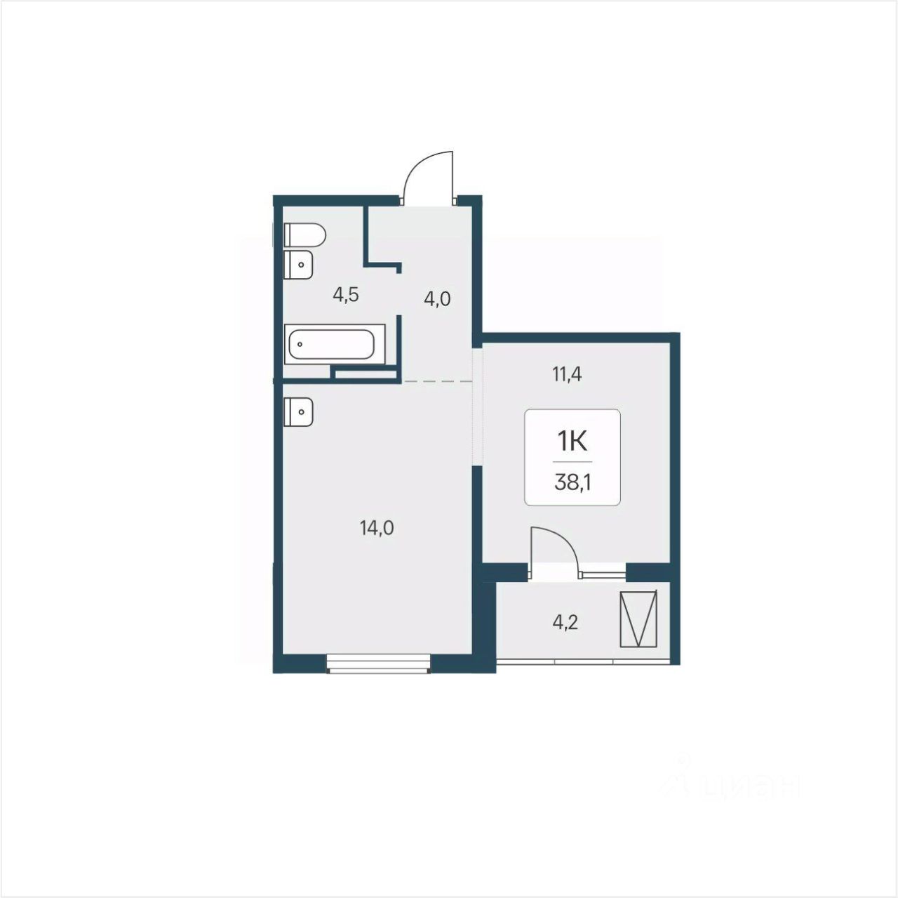 38,1 м²