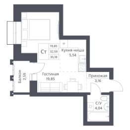 Продается 1-комн. студия с предчистовой отделкой. Квартира расположена на 15 этаже 18 этажного монолитно-кирпичного дома в миниполисе на Фадеева "Фора" от группы компаний "Поляков".