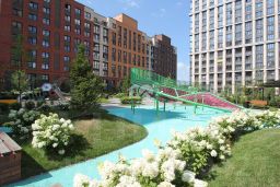 Новый жилой комплекс у реки. Классическая кирпичная кладка.