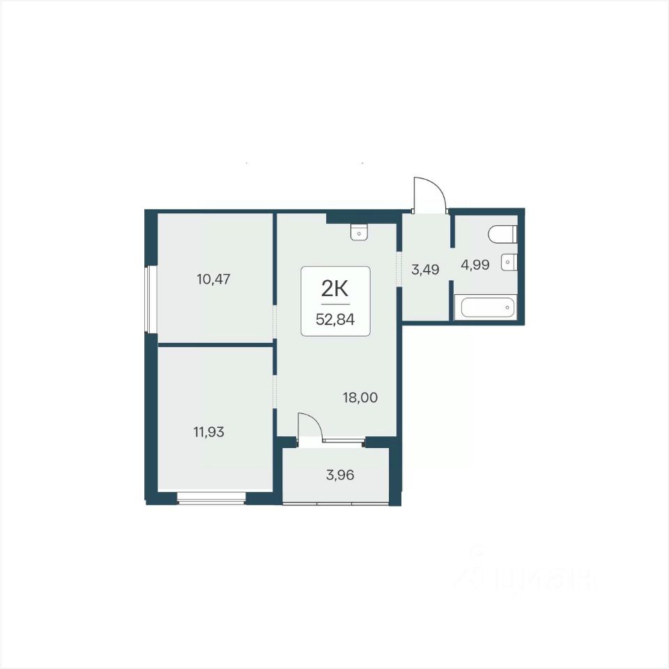 Общая площадь52,84 м²