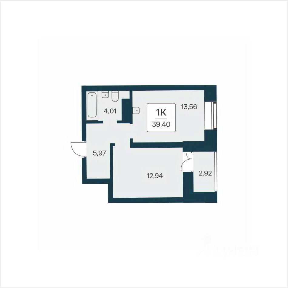 Общая площадь39,4 м²