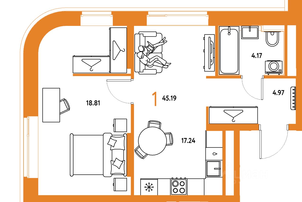 Продаётся 1-комнатная квартира в строящемся доме (Дом 2), срок сдачи: IV-кв. 2027, общей площадью 45.19 кв.м., на 6 этаже. "Страна. Тополёвая" - органично вписанный в городскую среду дом-квартал переменной этажности с акцентной башней доминантой. Мы открываем новую главу истории города, создавая пространство, в котором комфортно жить, работать и строить счастливое будущее.