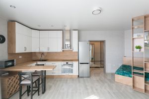 Предлагается к продаже просторная студия с ремонтом, техникой и мебелью в новом доме. В 10 минутах ходьбы от дома расположены две станций метро Студенченская и Спортивная, в пешей доступности Многофункциональный комплекс Сибирь-Арена, вузы СибУПК и НГТУ. Теплый дом монолитно-кирпичной технологии 2019 года постройки. В квартире выполнен отличный ремонт. Пол выровнен и покрыт кварцвиниловой плиткой, суперустойчивой к влаге и царапинам, матовый натяжной потолок в чистоте 2,7м с 4-зональным точечным освещением. Выровненные по маякам стены оклеяны обоями. Просторный 4,5м2 и отлично зонированный санузел полностью в керамической плитке. Квартира укомплектована следующим интерьером: кухонный гарнитур с барной стойкой, барными стульями, а также встроенными стеклокерамической варочной 4-конфорочной поверхностью ZANUSSI, духовым шкафом ZANUSSI, стиральная машина-автомат HOTPOINT ARISTON на 5,5 кг загрузки, большой встроенный плательный шкаф-купе глубиной 60 см с зеркальными дверьми, полноразмерная двуспальная кровать. Кроме того, плюсом в комнате может легко поместиться дополнительное спальное место в виде дивана или детской кроватки. Окна на юго-восток, что обеспечивает прекрасную инсоляцию всего помещения и уникальный вид на Обь и Бугринский мост. Комфортный 17 этаж (отличные видовые характеристика, отсутствие шума, пыли и насекомых). В данной секции 3 лифта. Приватная отсечка всего на 3 квартиры. Чистый ухоженный подъезд. В данном подъезде круглосуточно на входе дежурит охранник. Для владельцев авто всегда есть возможность запарковать машину на большой просторной огороженной дворовой территории или в очень большом 3-х уровневом подземном паркинге! Преимуществом данного дома является лояльный тариф управляющей компании. Без обременения. Более 5 лет в собственности. Организую показ в удобное время.