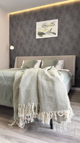 Популярная современная планировка, в которой есть две изолированные спальни с огромными встроенными шкафами, кухня-гостиная светлая и стильная, в ней приятно находиться и удобно встречать гостей - она сразу напротив входной двери (поэтому, две спальни - это ваша приватная территория).