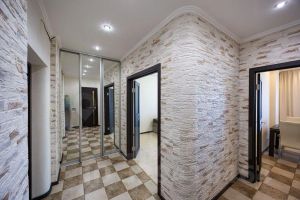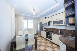 Ремонт выполнен в светлых тонах. В стоимость квартиры входит кухня: кухонный гарнитур с навесными шкафами, встроенная исправная встроенная варочная поверхность, обеденный стол, стулья (4шт.); санузлы: унитаз, раковина, тумба под раковиной, душевая кабина, исправный полотенцесушитель, зеркало, исправная стиральная машина; коридор: встроенный шкаф; жилая комната: диван, журнальный столик.