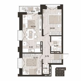 Общая площадь64,39 м²