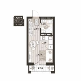 Общая площадь22,09 м²