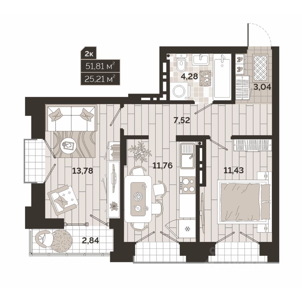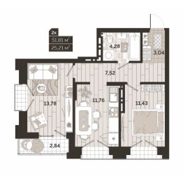Общая площадь51,89 м²