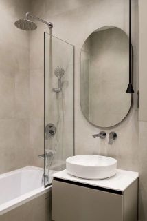 В ванной комнате большая ванна. Дорогая и качественная сантехника и смесители.
