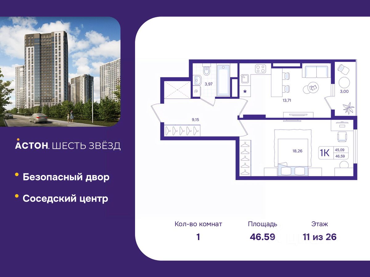 "Астон.Шесть звезд" - современный комплекс из 26-этажных домов класса "комфорт плюс" с уютными квартирами, вдохновляющими видами на левобережье, продуманной организацией жилого пространства, стильным дизайном общественных интерьеров и авторским благоустройством.