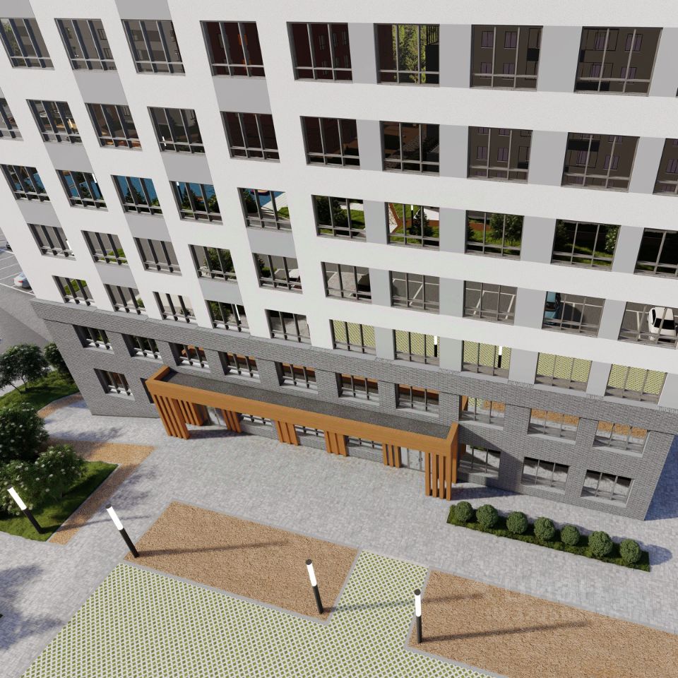Современный фасад с выразительными цветовыми акцентами органично вписывается в городское пространство. Яркие детали подчеркивают уникальный стиль жилого комплекса.