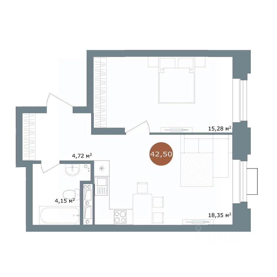 42,8 м²
