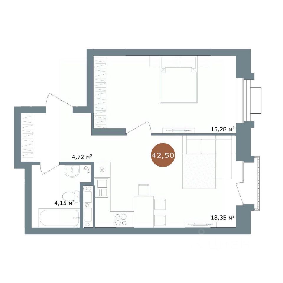 42,8 м²