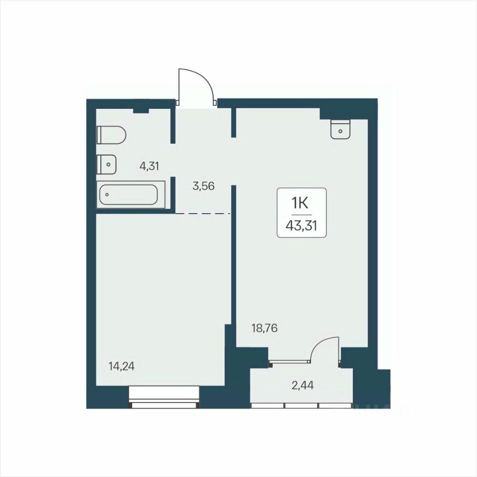 Общая площадь43,31 м²