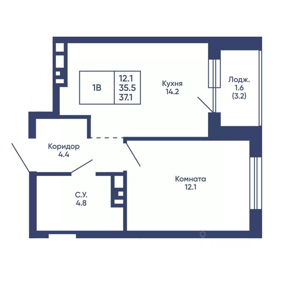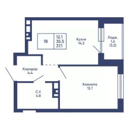 Общая площадь37,1 м²
