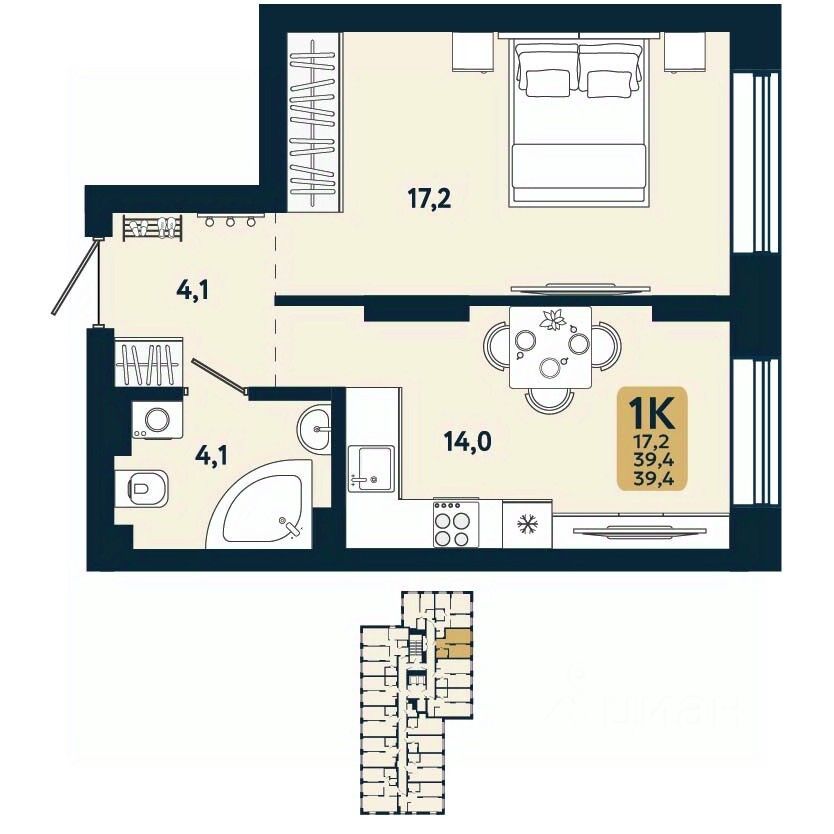 17,2 м²