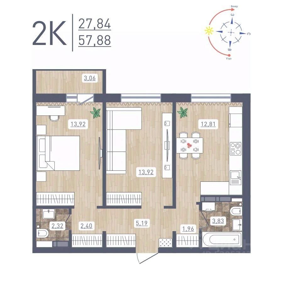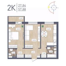Продаётся 2-комнатная квартира в сданном доме (Забалуева, 69 (Дом 9)), срок сдачи: IV-кв. 2024, общей площадью 57.88 кв.м., на 17 этаже. Расположение, транспортная доступность