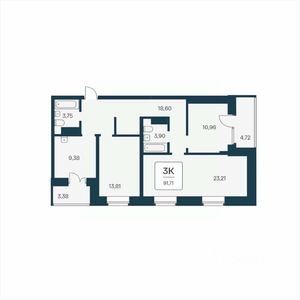 Общая площадь91,71 м²