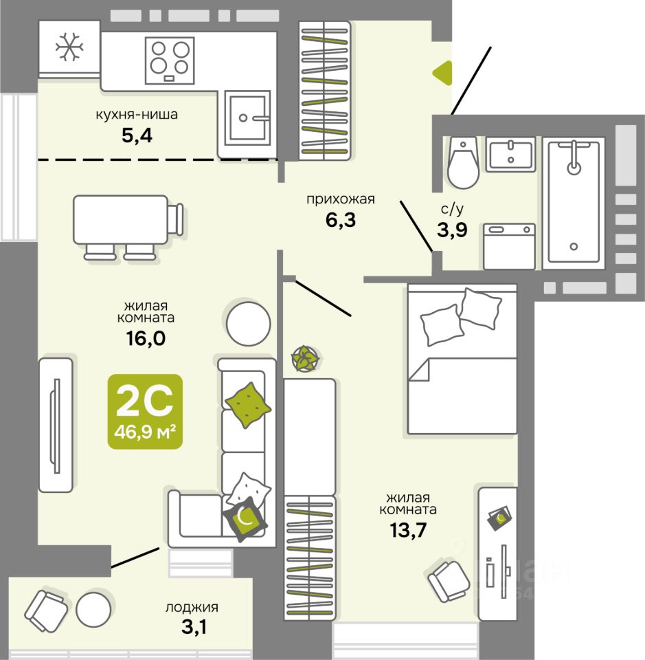 Планировки от 30 до 81 кв м