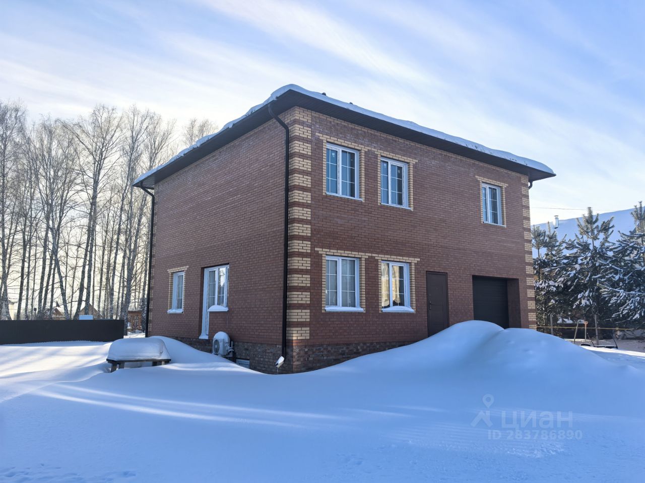 Общая площадь дома- 280 кв м. ( 165 жилая, 25- гараж, 100- подвал). Материал стен дома -газобетон 400+ облицовочный кирпич. Перекрытие всех этажей и крыши- плиты. Высота потолков в доме 2.8м., подвал-2.2м. Дополнительно в прихожей и санузле на первом этаже- электрический подогрев пола.