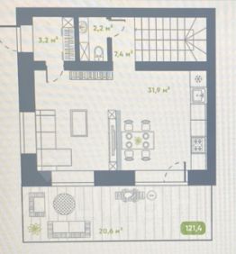 Цена указана с учетом 2-х террас, общая площадь внутри 121 кв.м., площадь террас 31 кв.м.