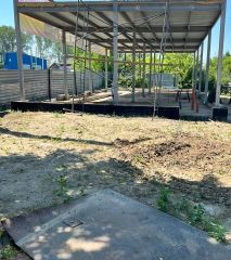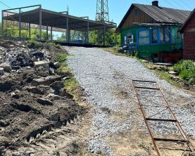 * участок и прилегающая территория распланирована и ведется отсыпка под разную этажность перепада, все деревья выкорчеваны.