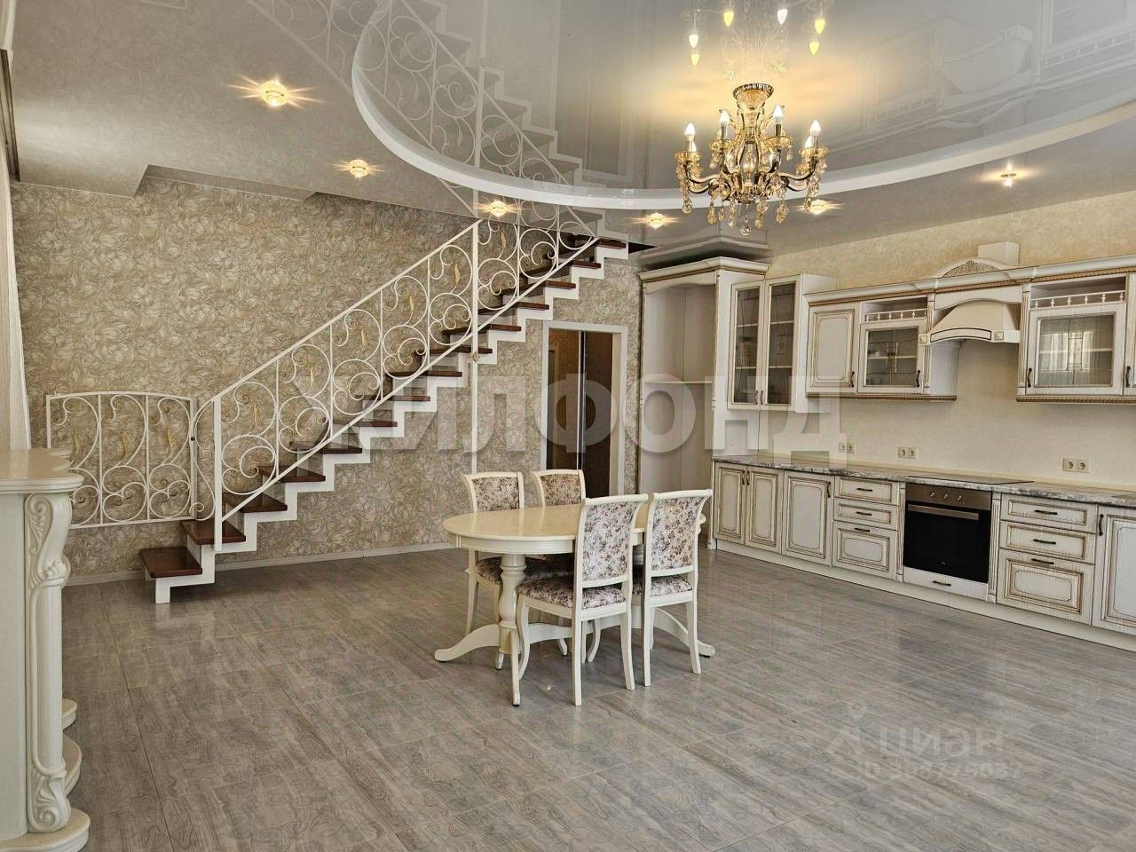 На Первом этаже расположены: Кухня-Гостиная S 41,4 кв.м со встроенным кухонным гарнитуром с бытовой техникой.