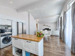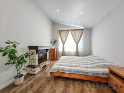 Дом отличает продуманная планировка - большая кухня-гостиная (44 кв.м.), где может собраться вместе вся семья, и три отдельные спальни. Одна из них мастер-спальня с собственной оборудованной гадеробной и большой ванной комнатой (5,6 кв.м.). В доме два санузла. Также вас порадуют высокие потолки (до 4 метров), что создает ощущение свободы и пространства.