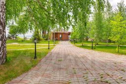 На территории расположены: - основной дом площадью 283 кв.м., - гостевой дом площадью 127 кв.м. ,- гараж для автомобилей и садовой техники, - закрытая беседка с зоной барбекю, садовая беседка, - игровые площадки для детей, - летний бассейн, дом для персонала,- отдельно выделенная садово - огородная зона. Первый этаж дома отведен под объединенное пространство кухни-столовой и гостиной с камином, гостевой санузел, хозяйственные помещения, сауну.