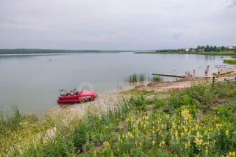 Свой песчаный пляж, 10 минут прогулочным шагом, есть возможность спускать катер. В обществе асфальтированная дорога; Въезд по пропускам через КПП;
