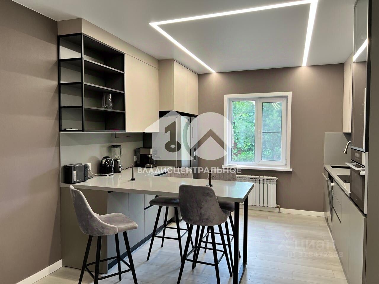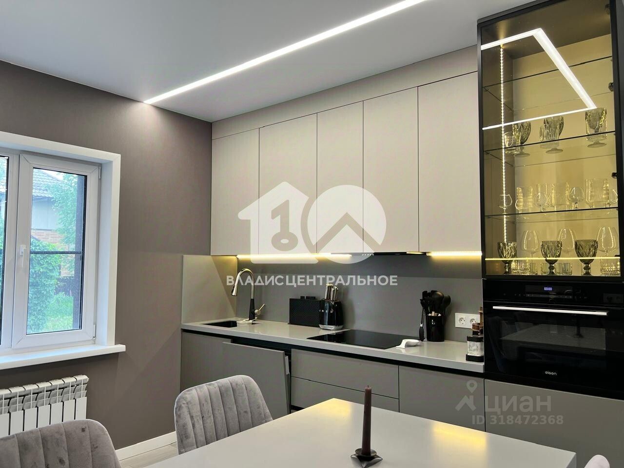 • Просторная кухня, выполненная на заказ с покрытием софт-тач