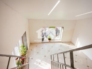 Общая площадь дома — 360 кв. м, жилая площадь — 240 кв. м. В доме пять комнат, кухня площадью 25 кв. м и три этажа. На участке также имеется гараж, баня и бассейн.
